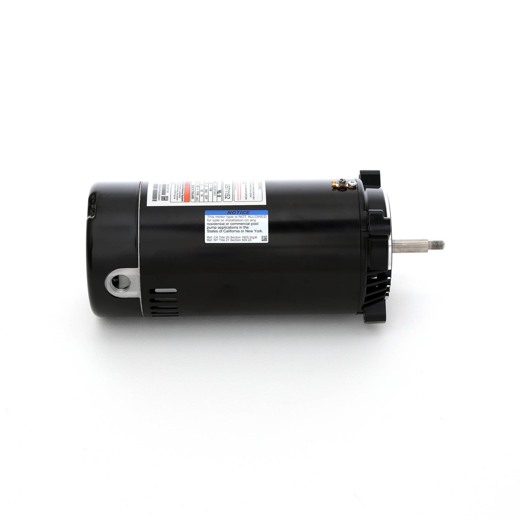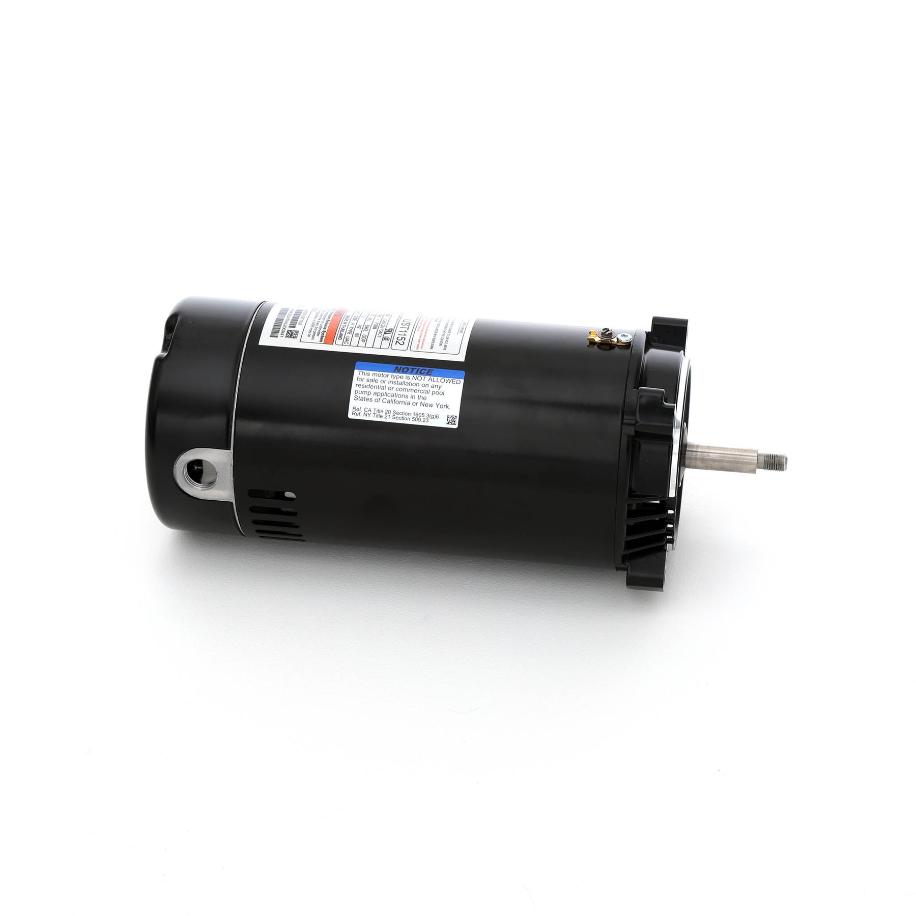 NoticeDue to state energy regulations (CA Title 20 §1605.3(g)(6); NY Title 21 §509.23), this motor may not be sold or installed in California or New York if it is a single-speed motor rated ≥ 0.5 THP. Please verify compliance before purchase. For this reason we cannot ship this item to a CA or NY address. |