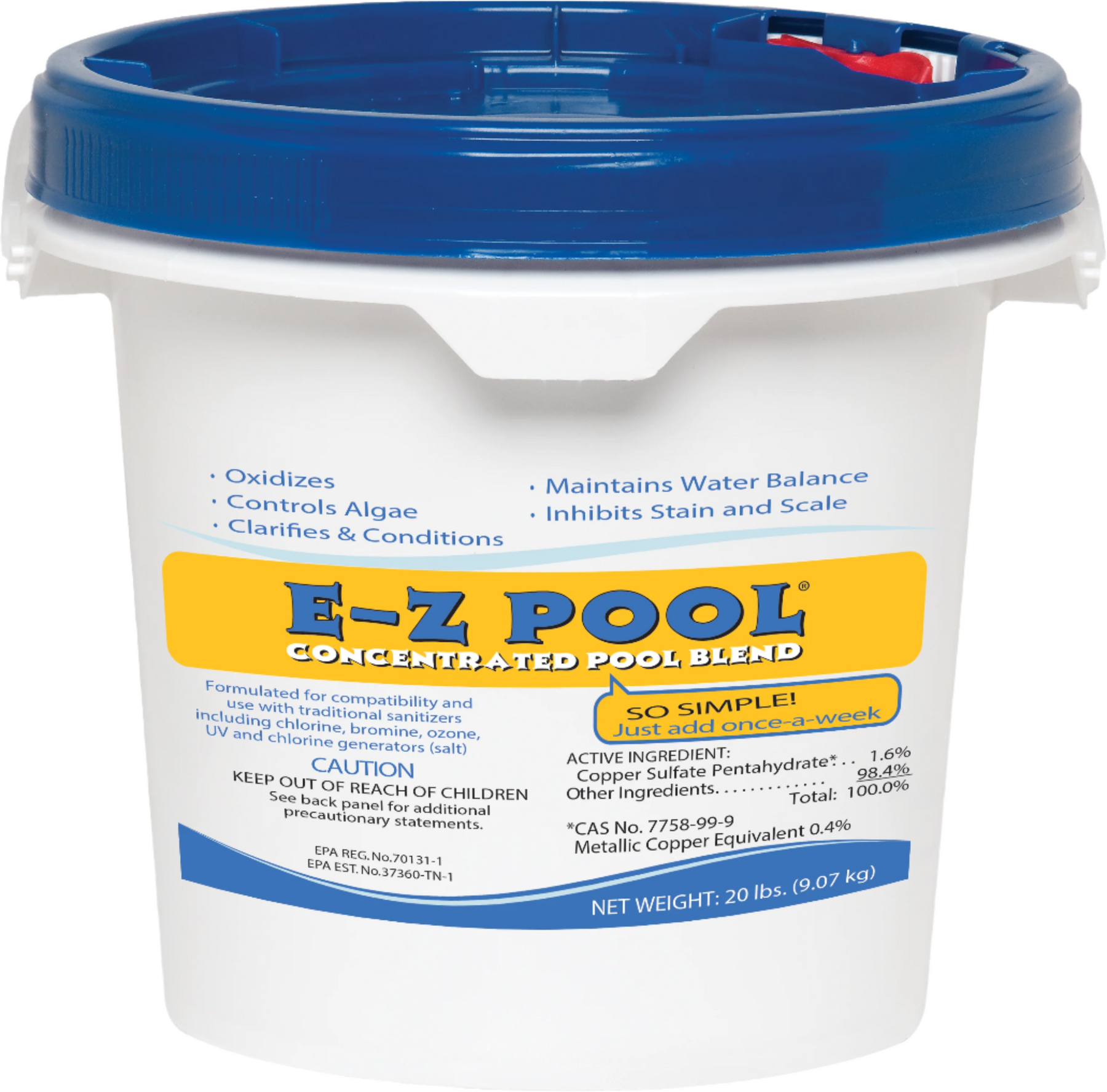 - E-Z POOL® contains a long-lasting chelated copper algae control that eliminates outbreaks.